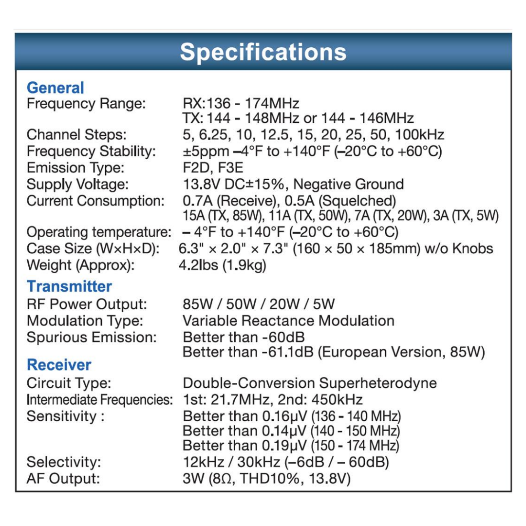 Frequency Range (TX): 144.000–148.000 MHz